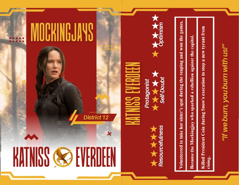 Trading card inspired by The Hunger Games by Suzanne Collins